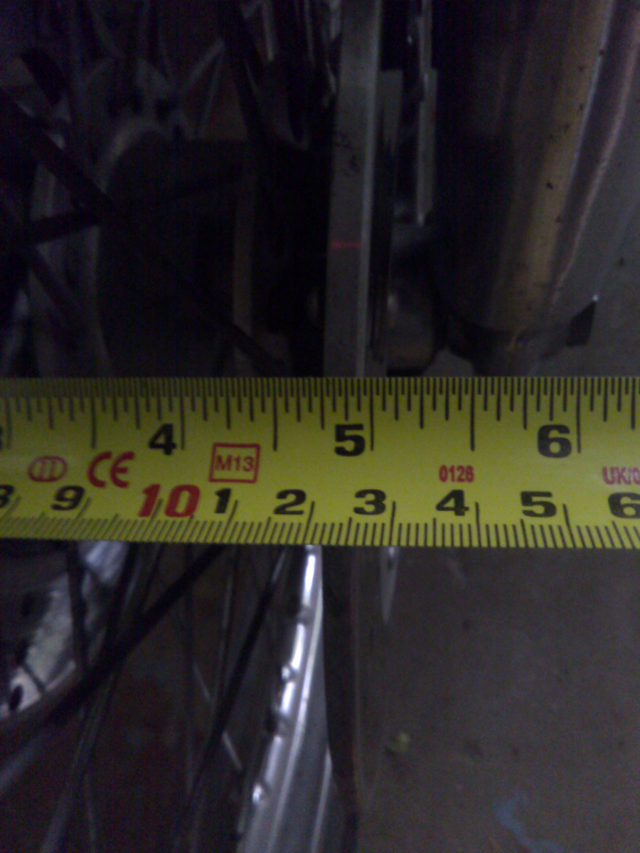 Would someone mind to throw a measuring tape between their front rotors? Could be helpful to do: