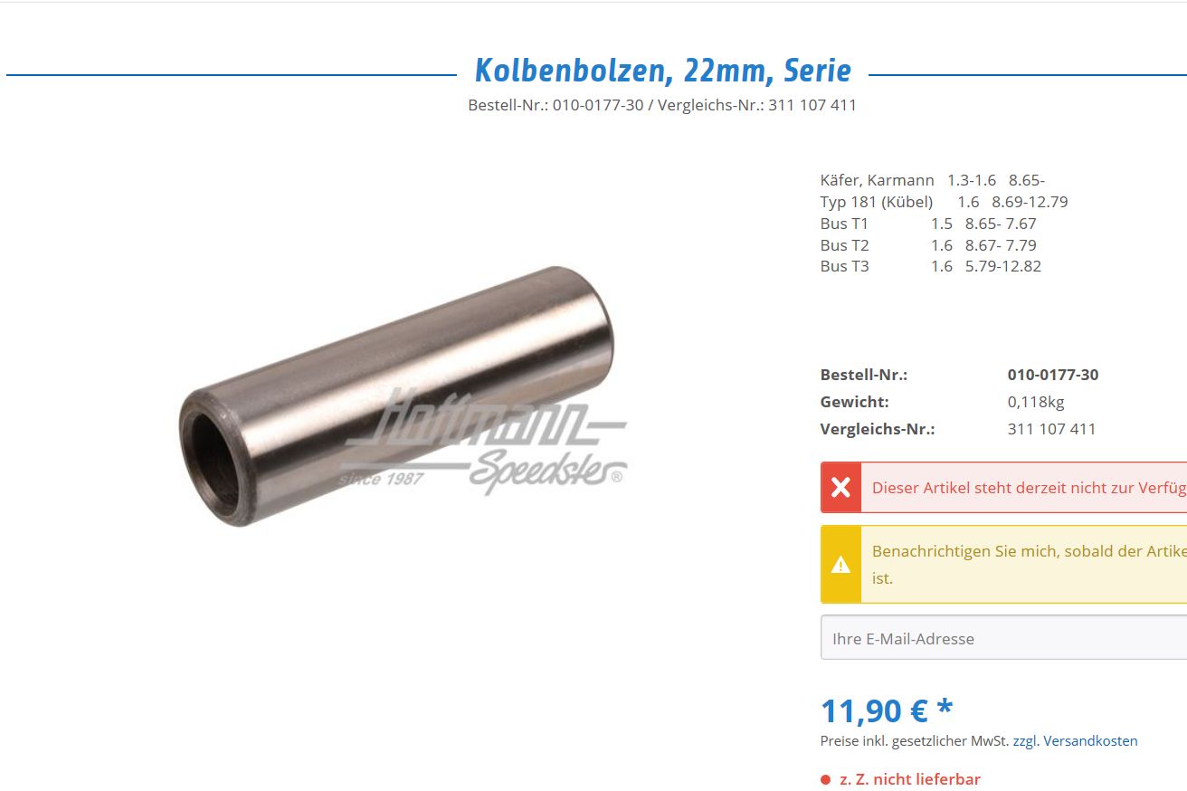 If you run out of money ask your local motor services shop for a good used VW Beatle 22 mm pistion pin.