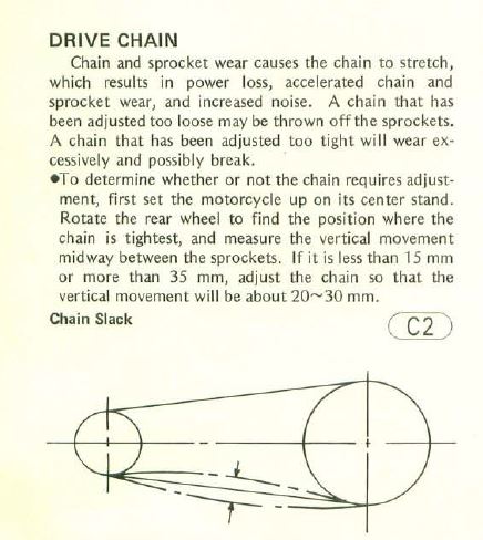 Lets talk some basic chain maintenance along with chain lubes. First thing you have to have is a properly adjusted chain. ALWAYS check your chain tension with both wheels on the ground, and you sitting on the bike. Just reach down and check the play in your chain. If you set your chain tension up on the center stand, then roll the bike off the center stand. You will see that the chain has tighten up considerably!!! On my Kz1000 if I set chain tension with the bike on the work stand, then roll it off the stand and sit on bike. My chain gets as tight as a banjo string!!!!!