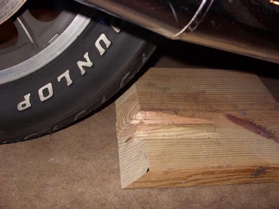Rolling the rear wheel up onto a wood block makes putting bike on centerstand a piece of cake, even for a ninety pound weakling. Almost fun! :laugh: