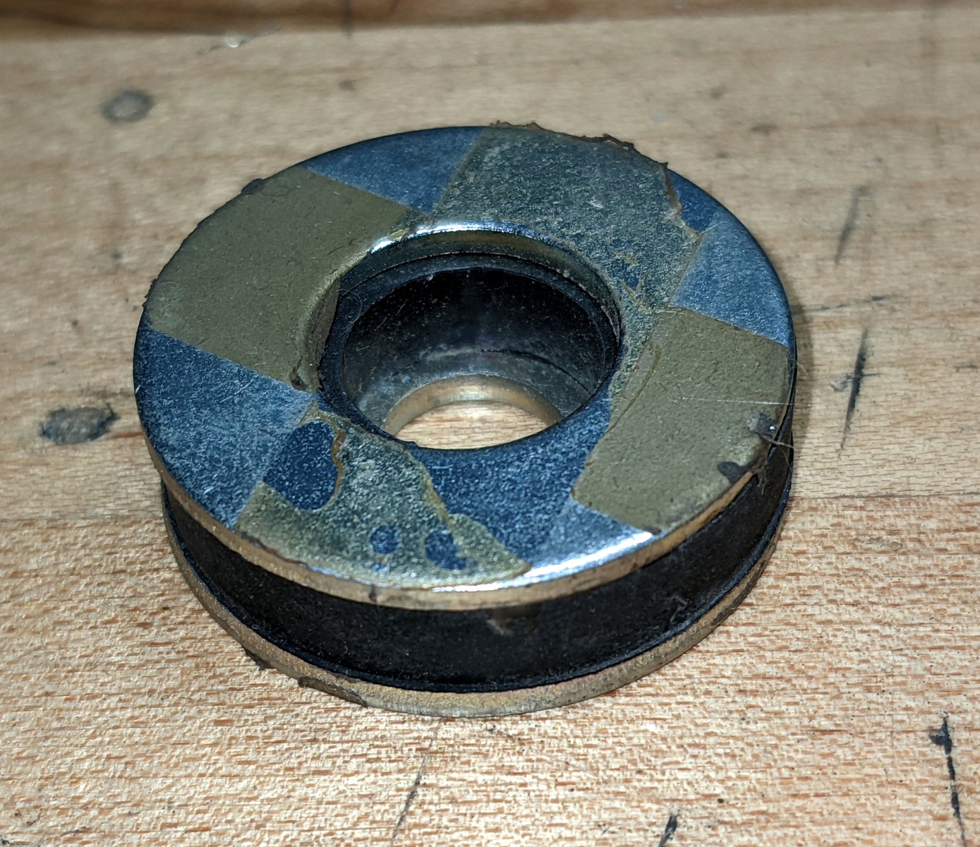 I eventually managed to find it. It's basically two washers glued on to a rubber disk. The OD of the disk and washers is pretty much the same, but one washer has an inside diameter smaller than the rubber ID, and one washer has an ID that is slightly larger than the rubber ID.