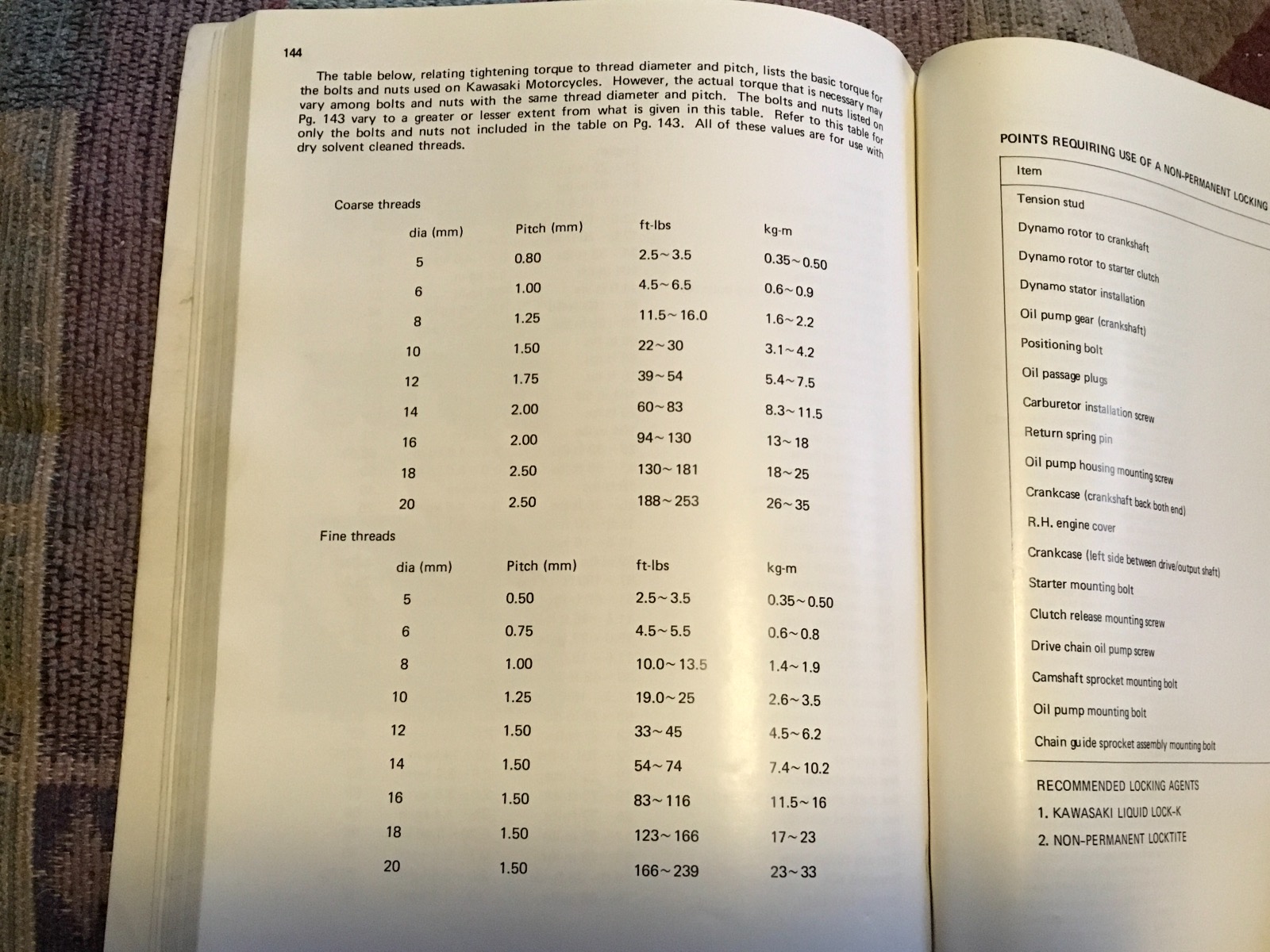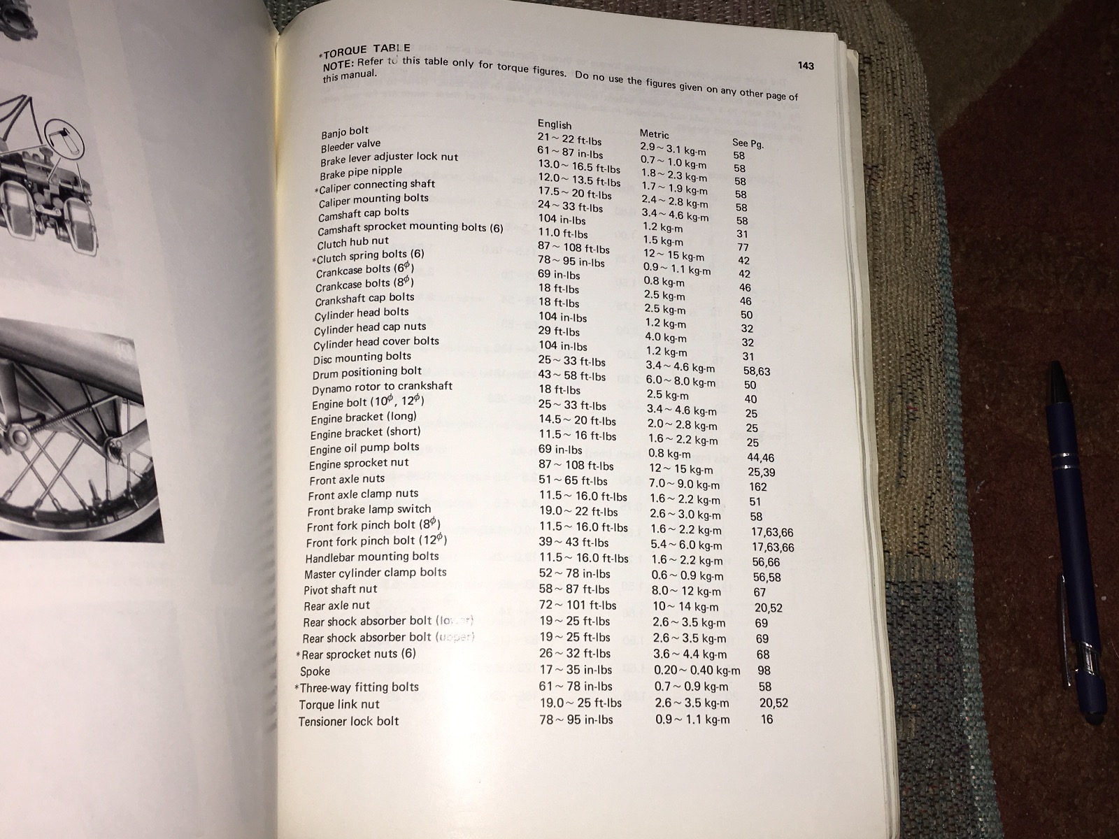 The next page in the manual has generic torque per bolt size and pitch. Top paragraph states to only use this if the specific bolt is not covered in the previous page.