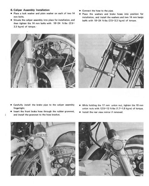 Years ago I changed the front fork lowers on my '73 Z1-900 to those from a KZ650 because they permitted me to use '76 and later KZ front disc brake calipers. In fact, the calipers from the '79 and '80 have larger diameter caliper pistons than earlier calipers. This made for a great improvement in braking along with the use of those 4-bolt 4.5 mm rotors. Then I upgraded to Race Tech cartridge emulators and Race Tech front fort springs which helped even more. All this went very well with wider rims and radial tires.
