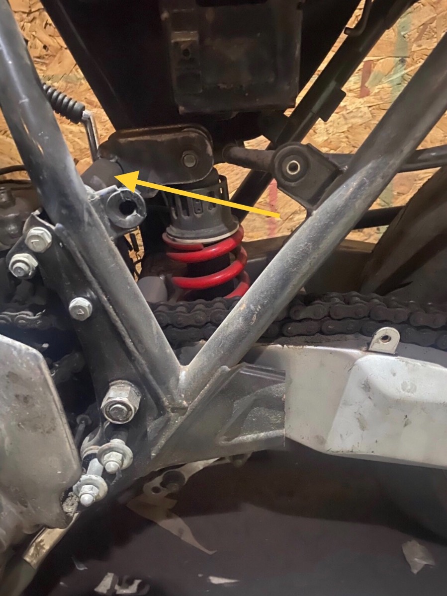 that is the lower shock mount on the swingarm. I have torn several of these bikes down, there is only the single crossmember