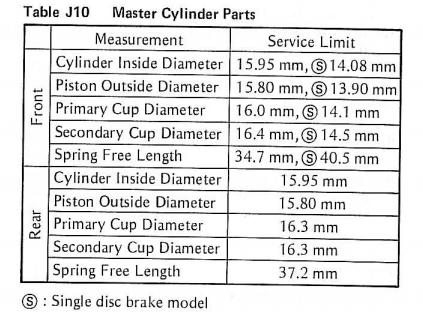 Looking up the service info in the factory manual for the 550 shows that the single disc bikes used a 14mm piston master (dual gets 16mm.)