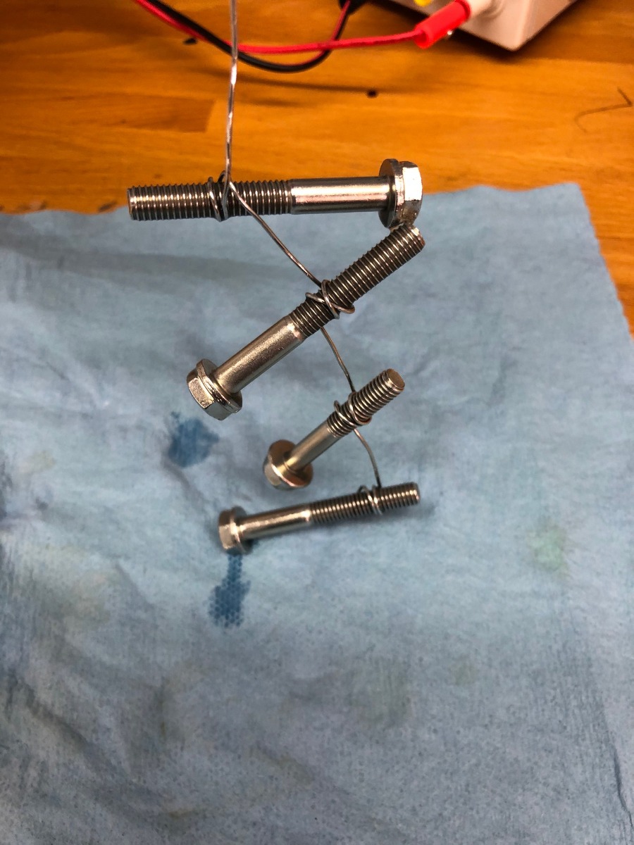2. Per Nessism info - I dip in acid (mixed muriatic acid from HD 50/50 with distilled water) until bubbling stops. Probably 10-15 seconds, maybe more for some certain bolts.