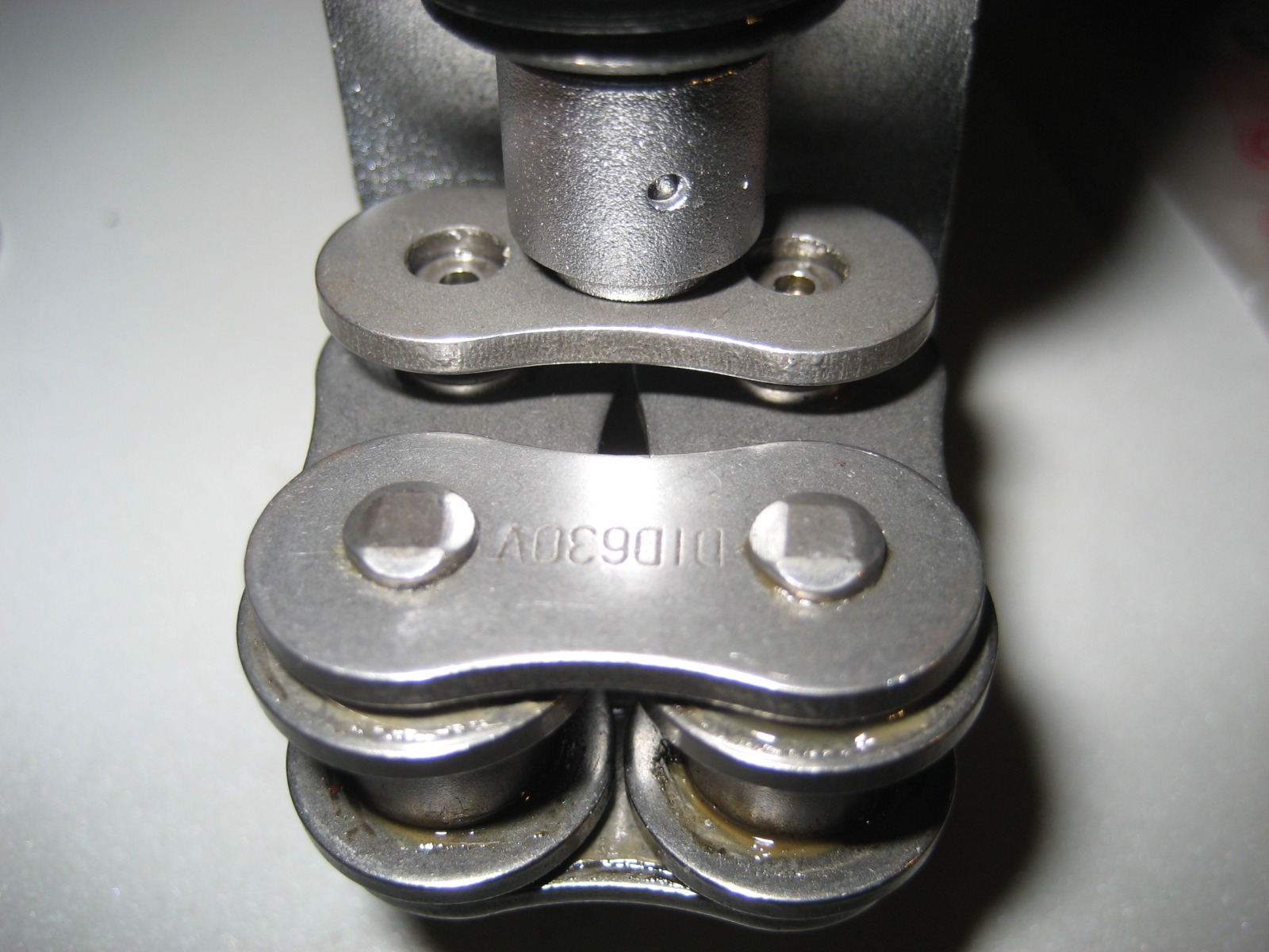 I prefer a rivet master link but have to admit, the safety wired link clip looks pretty secure.