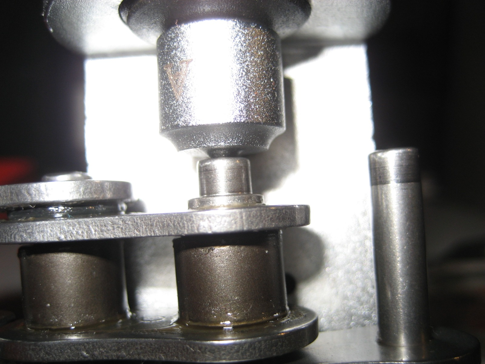 Modern rivet type master links typically have a hollow pin so the chain tool just has to flare out the end. Doing this is fairly easy and the tool doesn't undergo too much stress.
