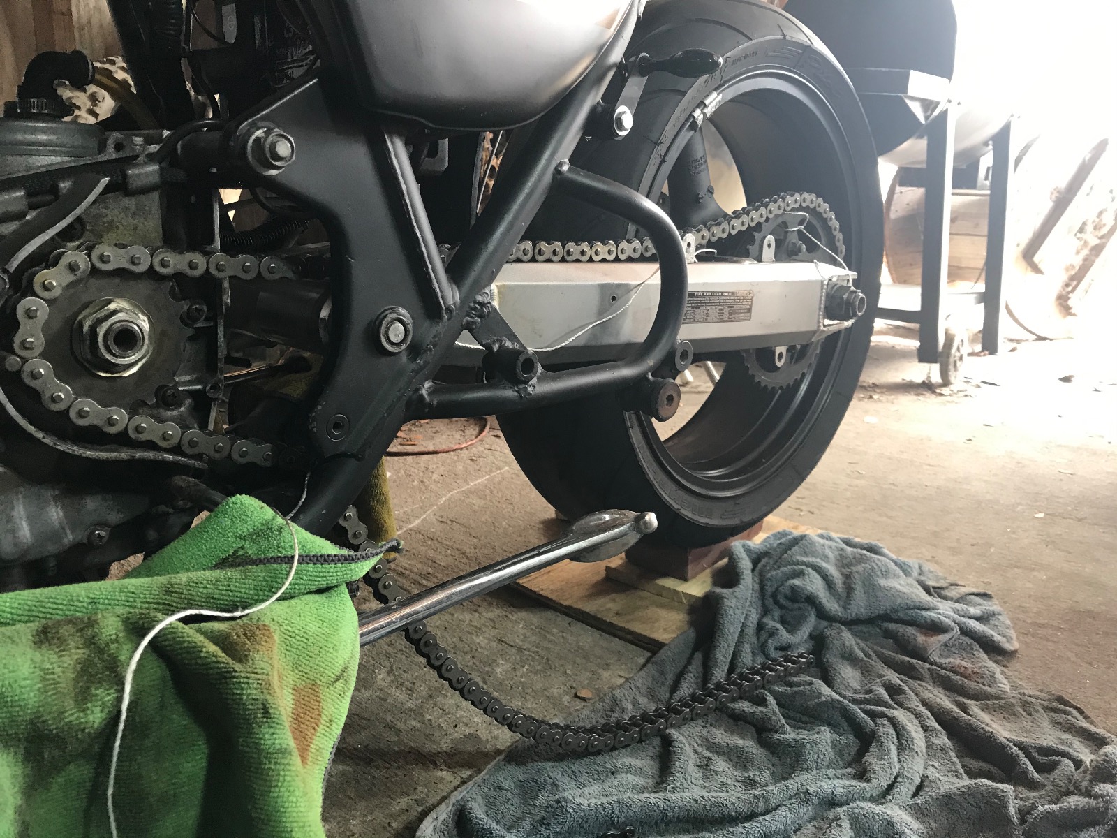 I was trying to mock all this up this morning before work, I have the 530 front sprocket on no off set yet, was figuring that today to the swing arm still has a 520 sprocket but figured it wouldn’t matter if the string ran on the backside of the sprocket if I done it right I need an 5/8 off set, I have a 17 t at the moment. But it seems that I would have to all but have the swing arm straight ( hardly no angle) for the chain to clear the swing arm pivot tube is this correct, cause if it is it’s gonna sit low in the back versus the front with the wheel I have.