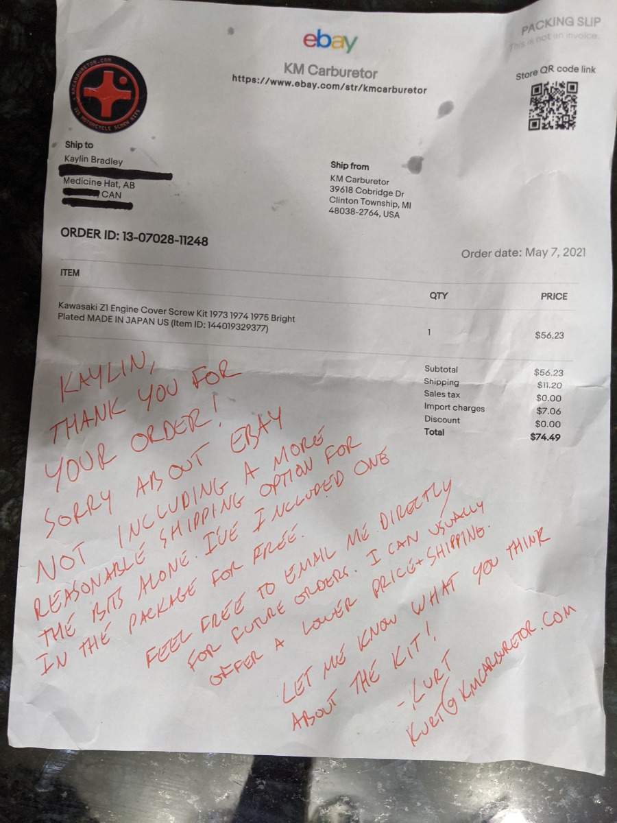 No eBay APP ID and/or Cert ID defined in Kunena configurationI recently ordered a screw kit from KMCarburetor to replace the screws on my bike that have lost their plating and keep rusting on me.