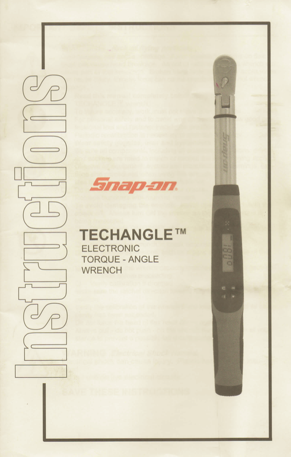 Snapon Techangle Electronic Torque Angle Wrench Owner's Manual.