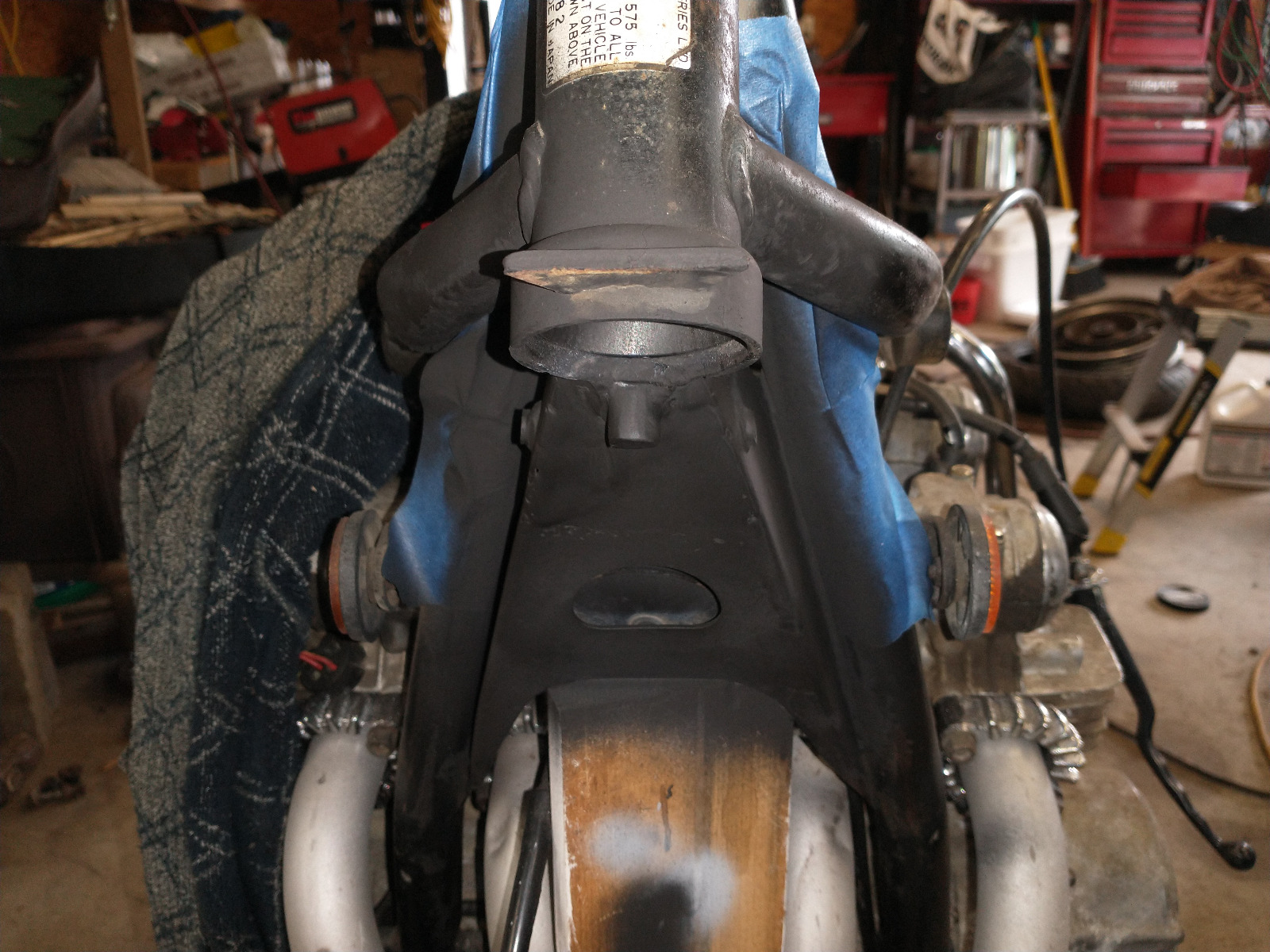 I can't tell what I'm looking at. My steering stop is bent from an accident. mine is basically a short piece of steel rod welded to the frame. since the upper triple would then bang the fuel tank, I drilled a hole & tapped some threads then installed a ss bolt to keep the tank from getting dinged.