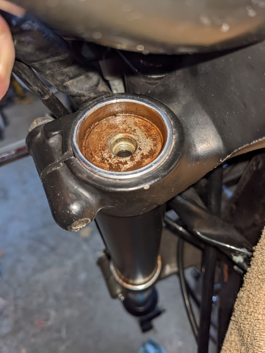 Just started on the "spare" Z500's forks that I have had for 38 years in the back of the shed with the rest of the bike and found on fork must have had water stood in it and rusted up.