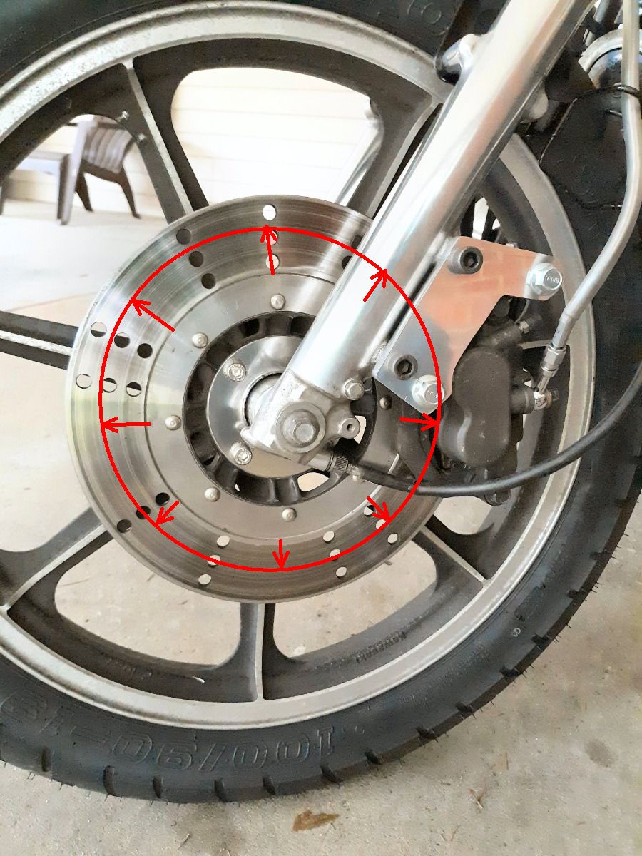 22 May 2022 16:39well shoot...not surprised though. There isn't much space to move the rotor either...rivets only leave maybe 5mm or so before they'd contact the caliper. No worries though. Think I read elsewhere that some of the early KZ1000's use the 4 bolt rotor that fit on the 440 wheel. If I can't get more braking from a caliper, a bigger rotor will work too.