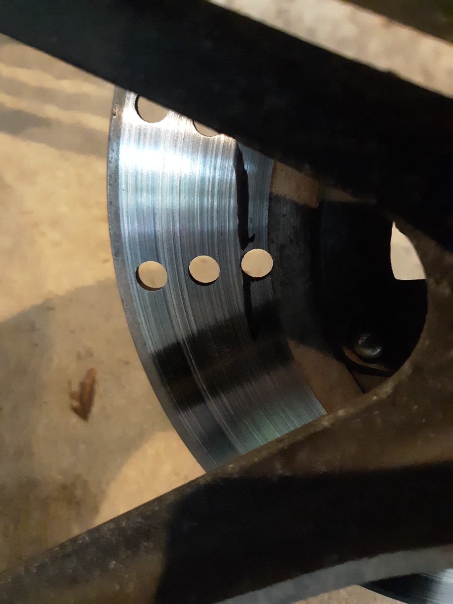 14 Jun 2022 15:56No...you can't see the top of the pads because it's a sliding pin caliper so I had to remove the pads first, place one with the top edge sits at the top of the rotor & mark where the bottom edge comes to. Then it's just a matter of putting them back in the caliper, positioning back to where it's marked & taking measurements on bolt hole spacing. It's a bit easier on opposed piston calipers because you can see the top of the pads without having to remove from the caliper. That's why I wanted to fit an opposed piston caliper...a 6 piston caliper with those wide pads give more braking action & almost all sliding pin designs only have 1 or 2 pistons.Is there any part of the pad face that is not contacting the disk? Asked a different way, does the pad extend beyond the outside edge of the disk?