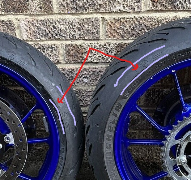 12 Sep 2022 12:40Indeed, keep them "chicken strips" leanSome motorcyclist consider it a badge of honor to wear the sidewalls of both tires out before the center tread proving their corner carving abilities