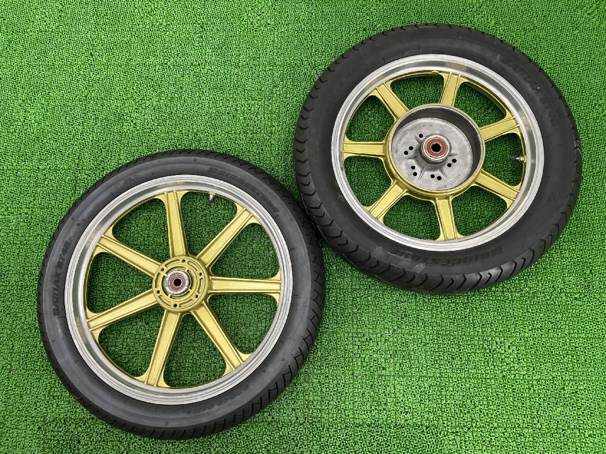 16 x 3.5 on my Z900 drum brake lesters mate, thats a 150/80 rear tyre on there comfortably.