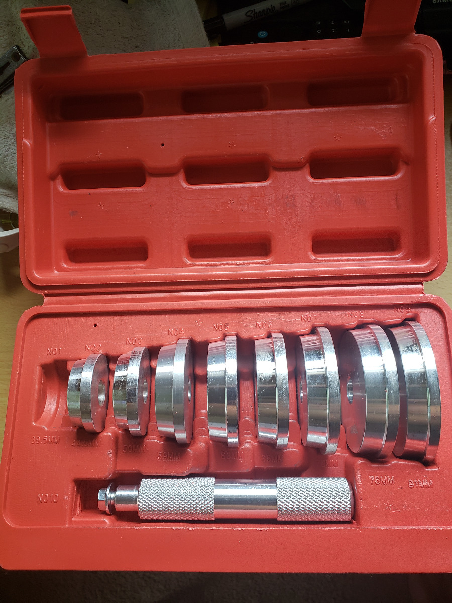 Based on your answers and the fact that the Motion Pro kit is not a perfect fit, a tapered driver does not seem that necessary? maybe just push them in with a piece of plank then the last push with one of the old races? That and heat/cold to make it easier?