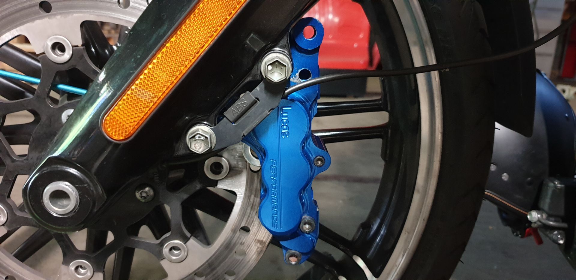 His 2004 FXDWG,had a spongy front brake and a poor performance/response behavior of the fork.This is the finished result.