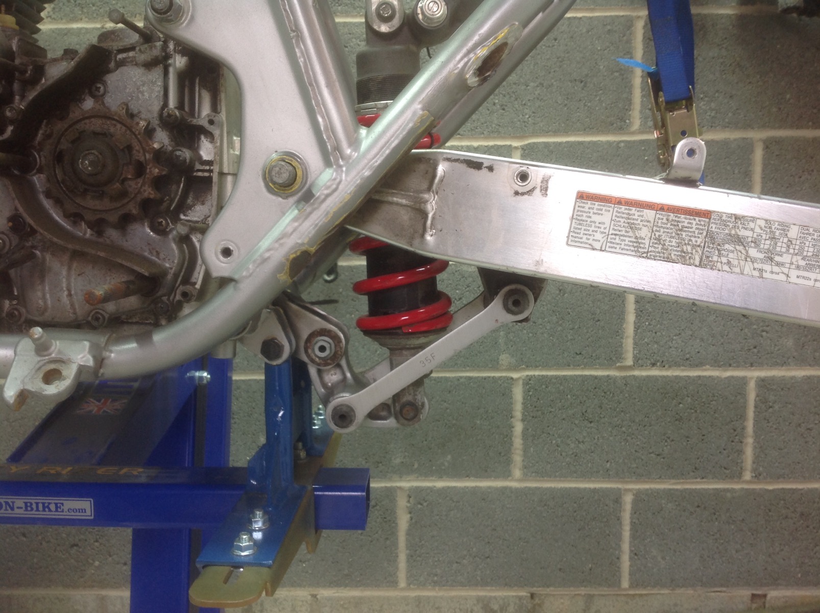 A mono shock will not improve the flexible nature of those old frames. The KZP has wider fork spacing, my brother found a fork brace for his which improved matters.