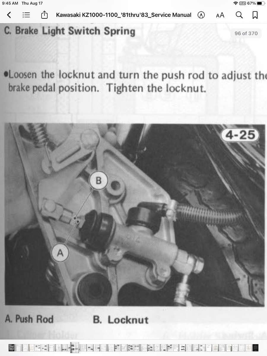 @TexasKZ yeah that's the style I have. All these years I didn't even realize the height of the brake pedal could be adjusted until I swapped the master cylinder last week and couldn't even sit with my foot on the pedal because the brake was so high. I took it apart again and screwed everything down all the way, and the brake pedal is finally down in a comfortable position where my foot doesn't rest on it.