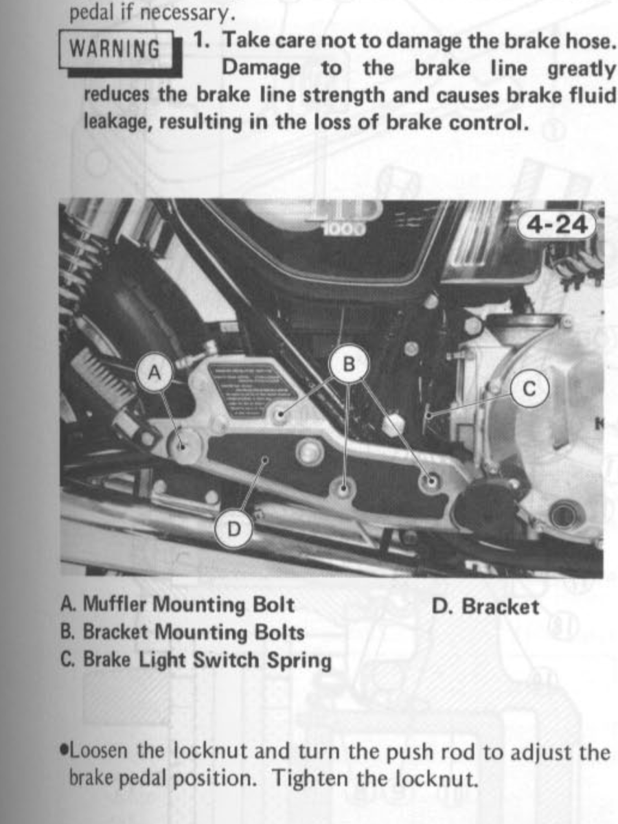 The J-engined 1000 LTDs (1981 - 1982) have a completely different rear brake pedal, bracket and master cylinder setup than the earlier LTDs.