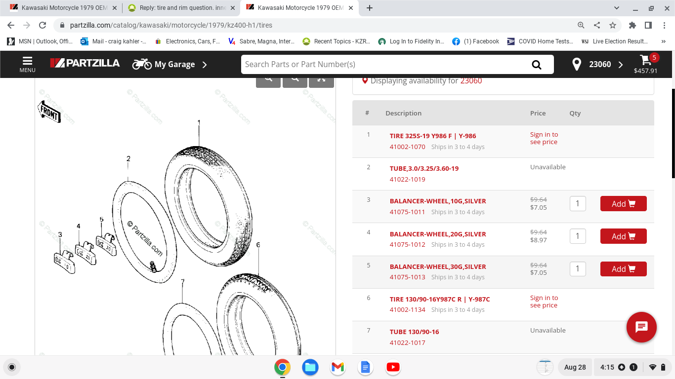 My recently acquired 1979 KZ400h LTD has tube type tires mounted on cast wheels, with no inner tubes. I have been having to add air every few days, and have found the cause has been air leaking around the rims. I have always thought cast wheels took tubeless tires and do not require tubes. However, Partzilla is showing inner tubes with these wheels.