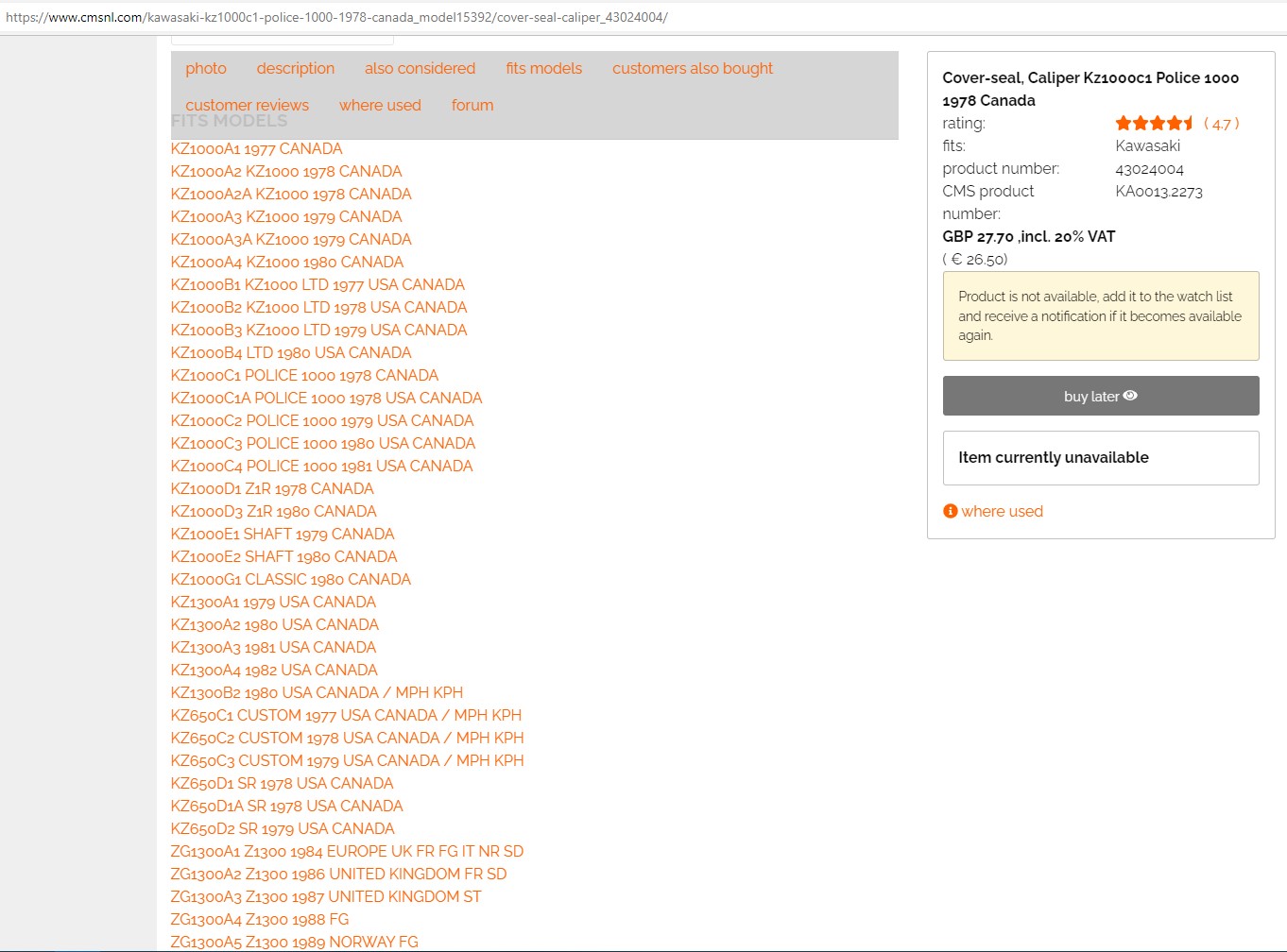 Hello, looking for info on the O-ring that is for the white plastic reservoir & aluminum body for the rear caliper from KZ1000 77-78 A model. Or there all the same.