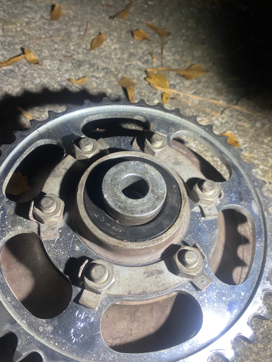 And putting the spacer in between the rubber cushion and the sprocket drive would sit the spacer right on the bearing surface so that definitely does not make sense.