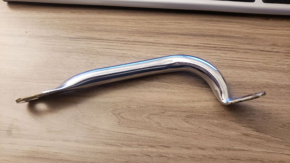 I seem to vaguely remember that it was used to assist in getting the bike up on it's center stand. I can't for the life of me figure out how it was mounted. I almost fits between the rear upper shock mount and the rear turn signal, but the length from hole to hole is a bit off and it would interfere slightly with the ducktail. I think it would also interfere with the grab rail that goes around the back of the seat. I haven't been able to find it listed in any of the parts books or online parts drawings. I also haven't seen any pictures of Z1s online showing this piece.