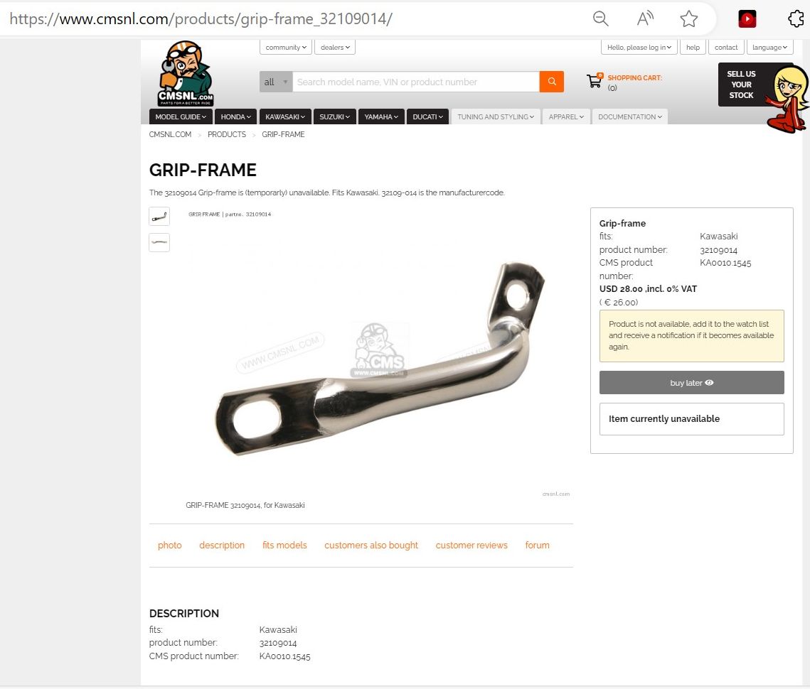 08 May 2024 10:05The KZ650 part is a straight piece and interchangeable from side to side. The part I have shown in my first post isn't straight and wouldn't work for either side. The confusion continues . . .The part referenced by gd4now and shown by sdinse is the grab rail used on the Z1R's (one on each side). They mount using the same holes used for the larger grab rail on Z1's, KZ900's, and KZ1000's, which is the single rail that goes around behind the seat. The Z1R parts will bolt to the same mounting holes and replace the single grab rail. I have fitted the Z1R parts to my Z1 for a different look.