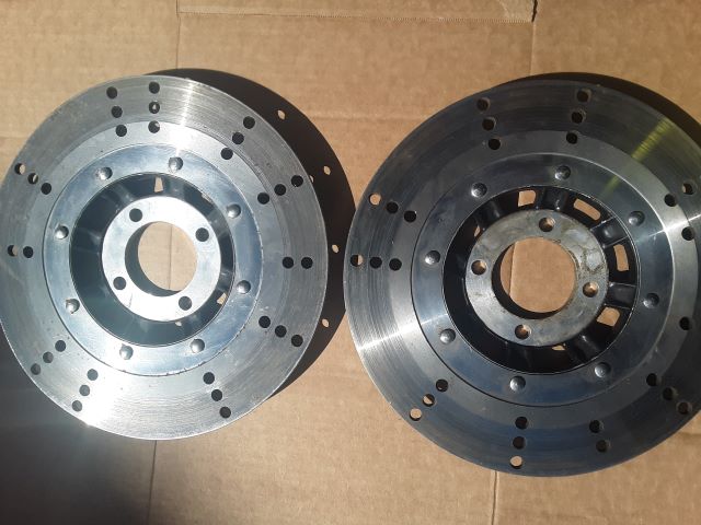 On those disc's, focus on Kawasaki models in the 1979 and 1980 years. Thats when the still used the 4-bolt hub and 8-rivet attachment arrangement. Could be KZ650, 750, 400??? If both have the same offset and "thin" like 4.5mm then most likely off a duel front brake equipped model.