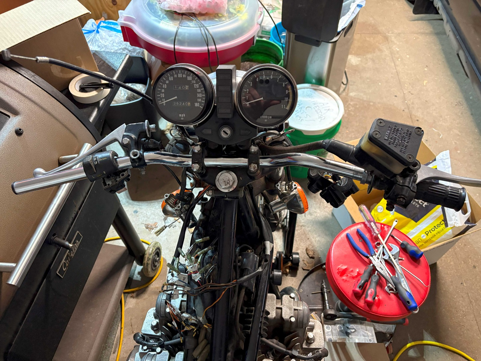 Hey, I'm kind of dumb and didn't plan very far ahead when I started switching the handlebars on my 1978 KZ1000 LTD. I'm in the process of replacing the stock cruiser-style bars with the "
