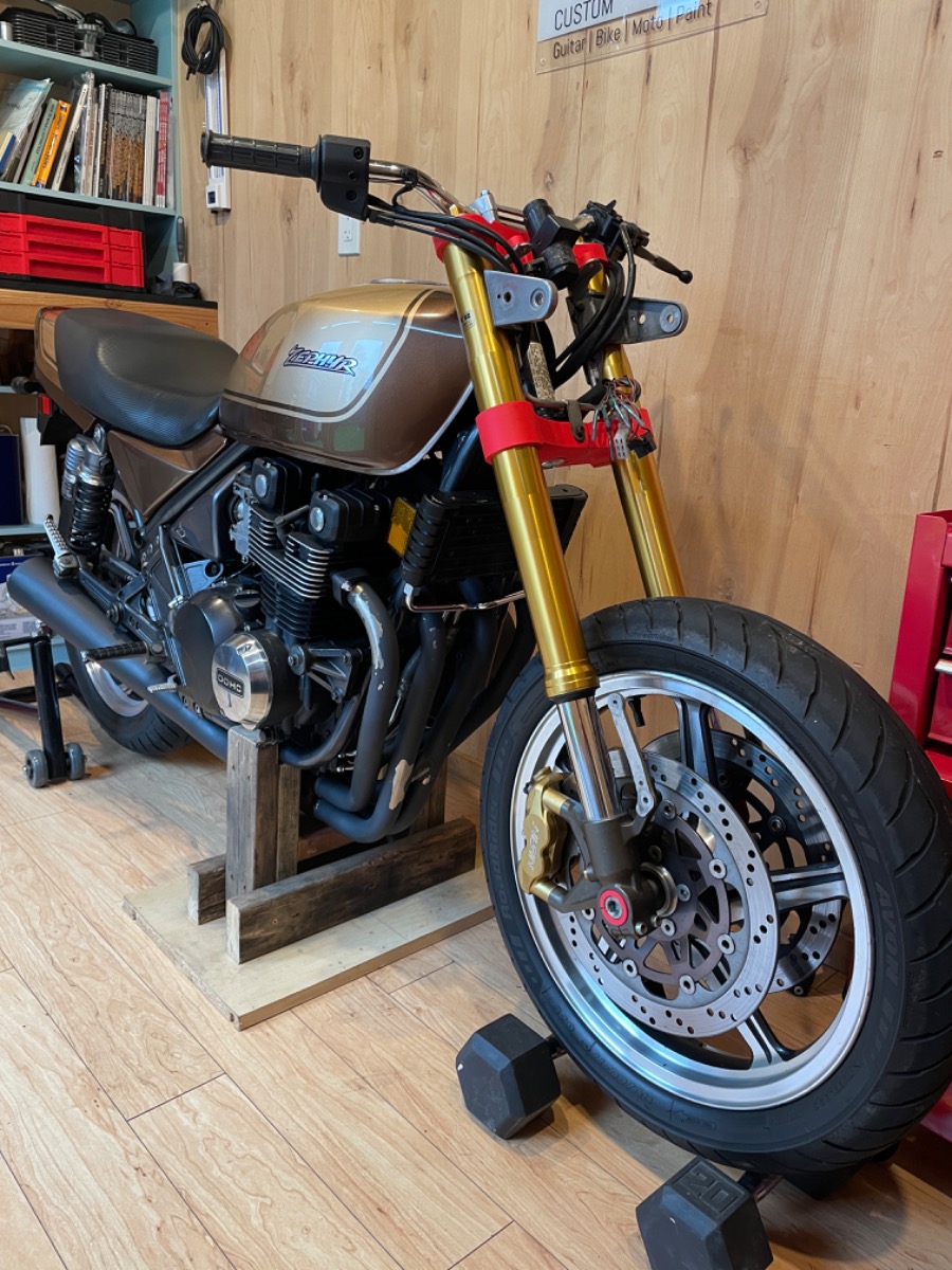 So the goal has always been the same, fitting a set of upside down forks to my Zephyr 550. I could argue that it's about performance, because I will be gaining three-way adjustable modern cartridge forks, and four-piston radial-mount brake calipers. Technically, an improvement. But I'll be honest and tell you that the main motivation has always been that it looks cool. I got into motorcycling when the modern version of a cafe racer resto-mod was all the rage, and upside down forks were a must. At one point I decided it was too much hassle and not worth it considering my all-original bike was in great shape. Then I got rear-ended and had to rebuild the bike on a salvage title. Figured since it was never gonna be a fully clean title bike anymore, might as well do what I want with it.