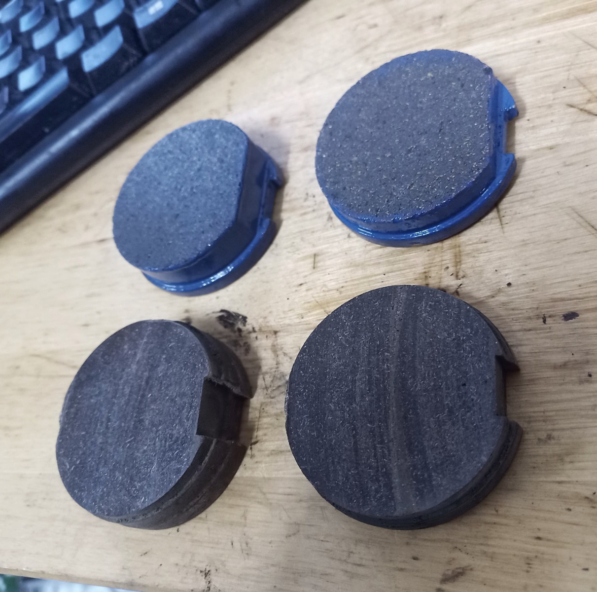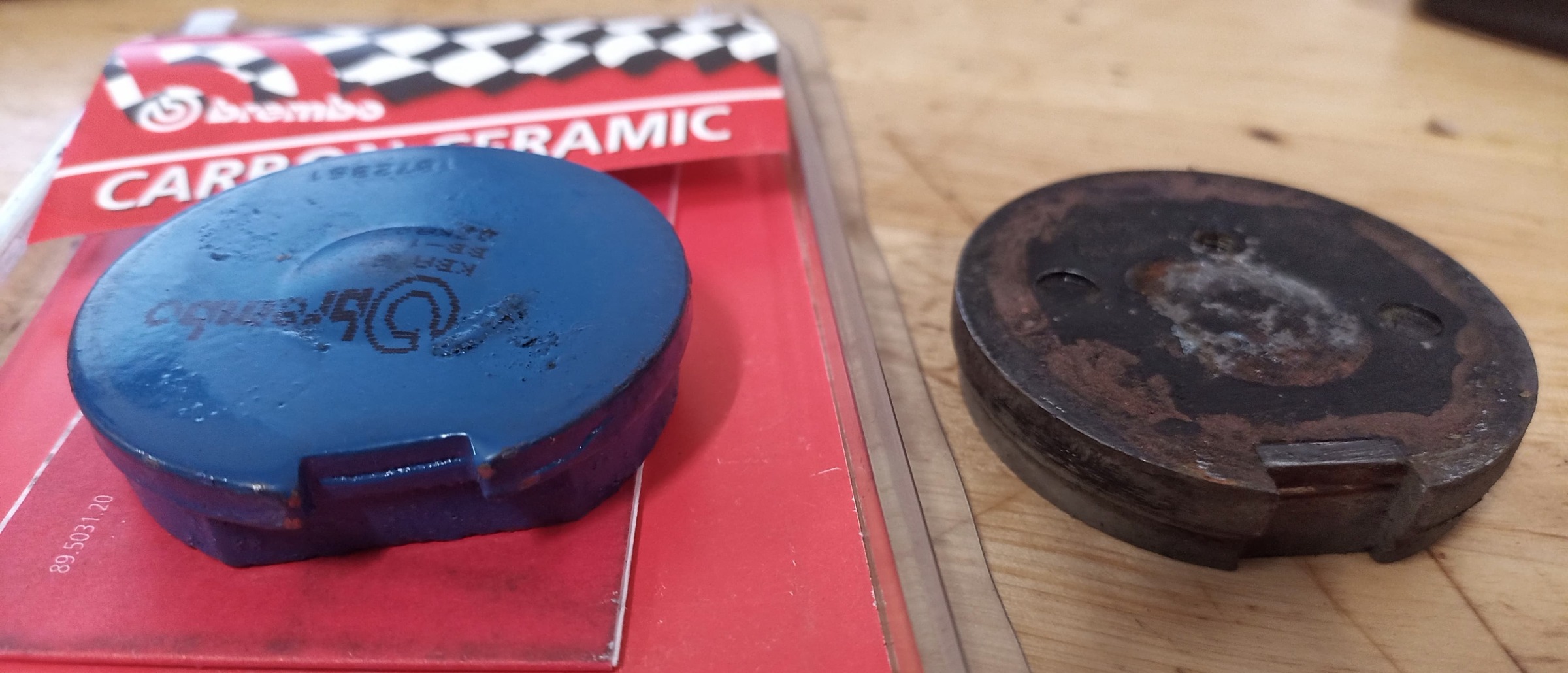 I bought a set of new Brembo pads for my KZ, not because the old ones were worn, but for improve braking performance. I'm also going to take this opportunity to regrind the disc (remove the small grooves).