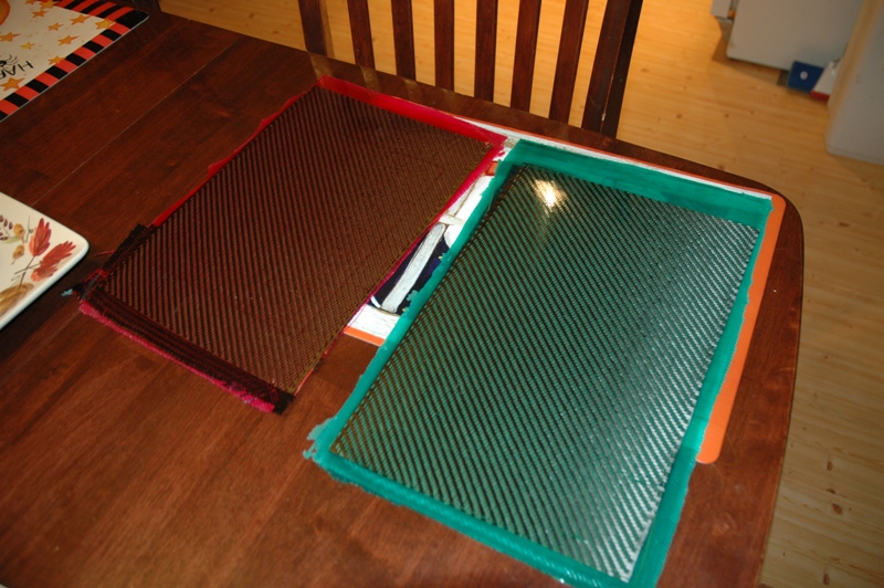 My two infused panels side by side. Starting to look like christmas :laugh: The first panel turned out better than the second did as far as surface pinholes. I have an idea why, but I don't plan on doing another test panel. Next should be a tail if I get a chance to work on the mould.