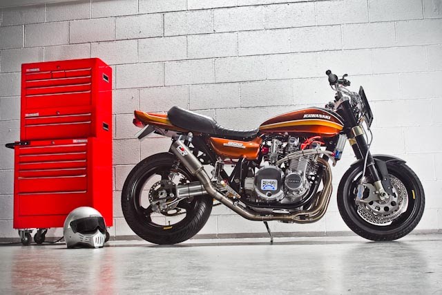 Here's my KZ900 painted in 73 scheme with black and red..............not a professional job but I like it!
