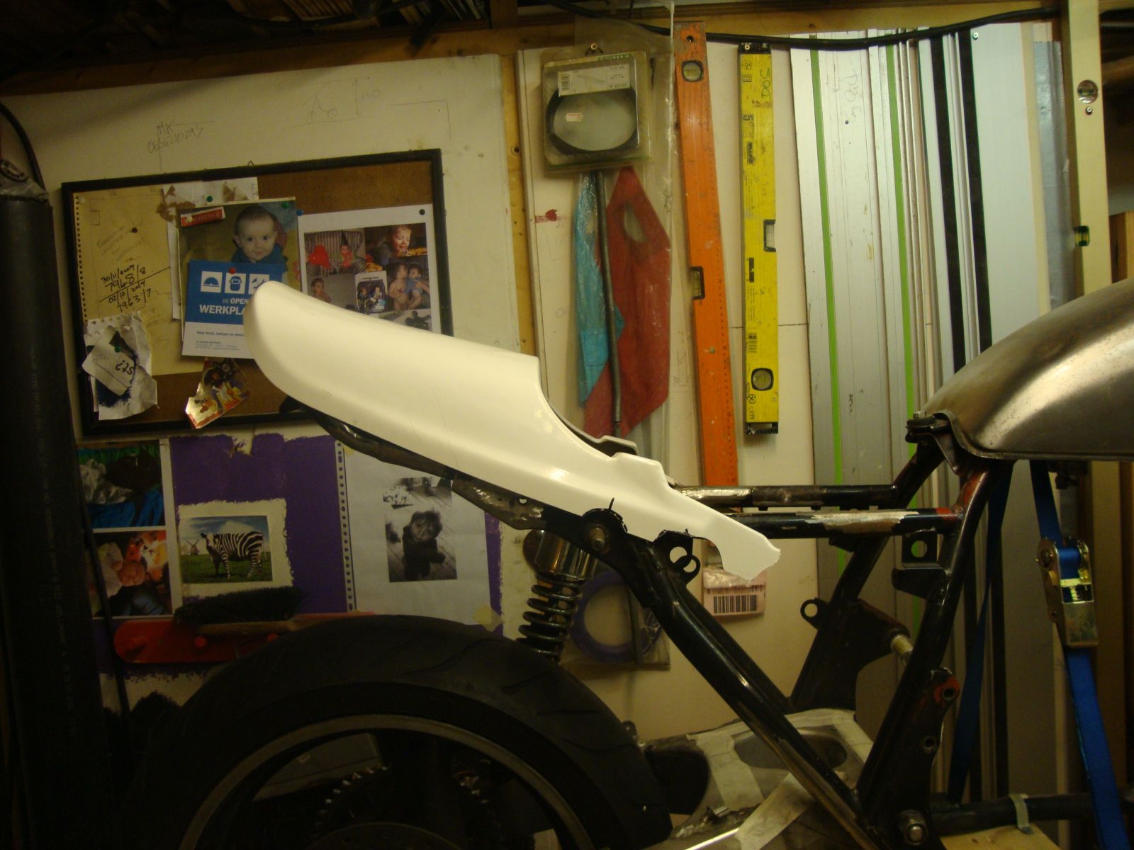 Im dealing with the same thing at the moment on my CSRproject.The CSR came with a huge couch of a seat, a regular chrome mudguard and a tail light the size of a small TV. Pig ugly (IMO)
