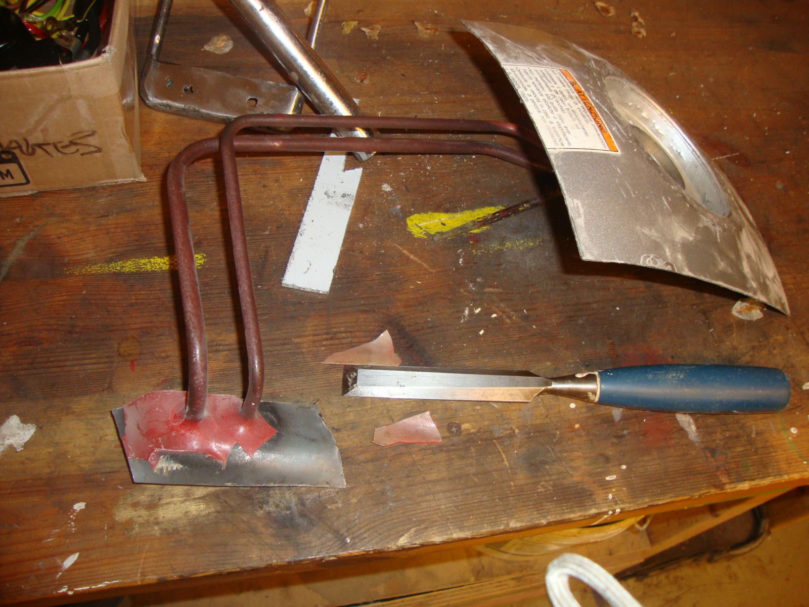 My local bike shop were throwing out an old Bandit tank because the liner had started to seperate. I borrowed the grinder and hacked it up for the 'aircraft' type tank filler top thing for my project. I had to take an old chisel to it to get the liner off
