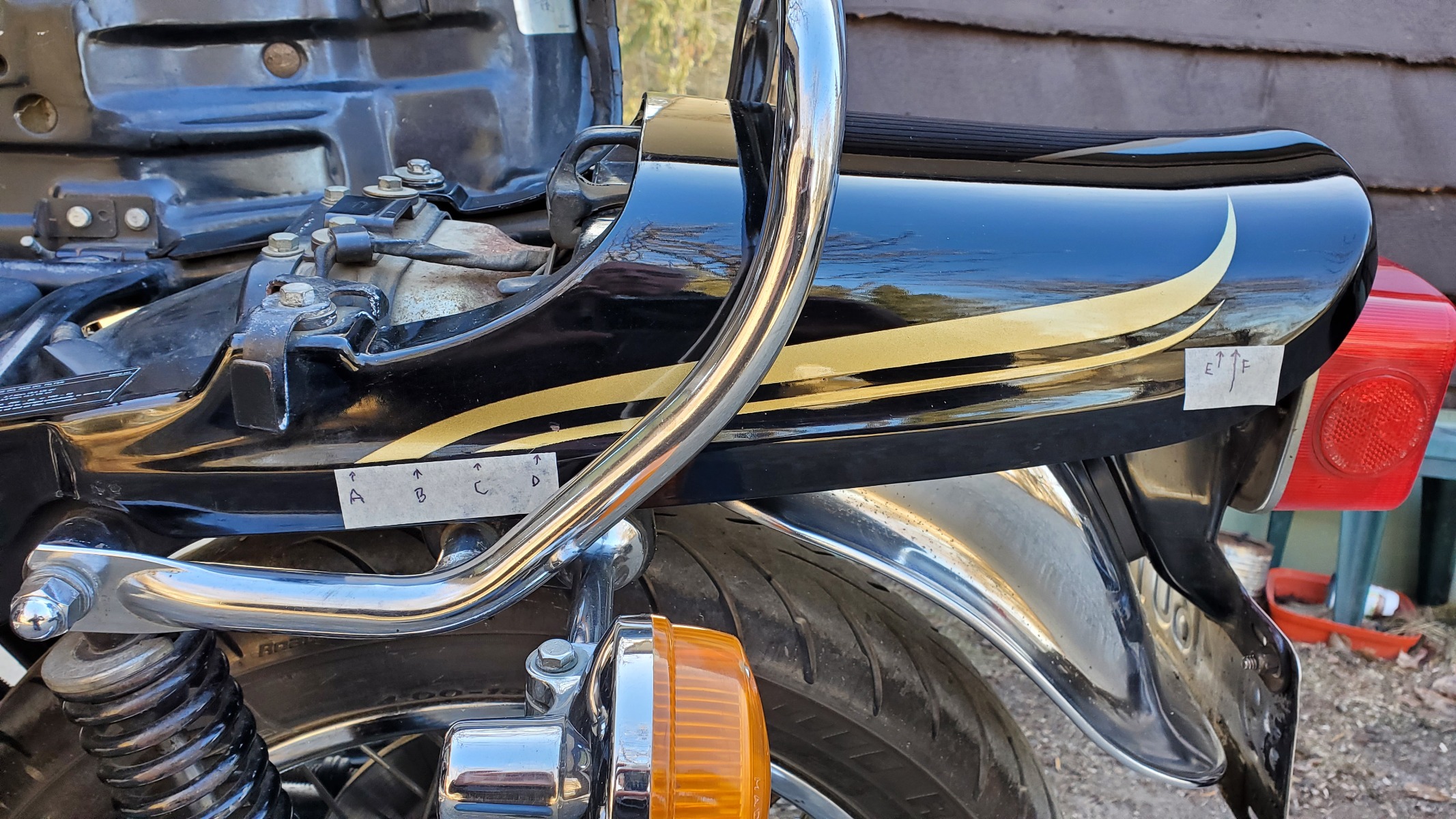 BC, I love your bike it puts mine to shame, but this is what a 44 year old paint job with decals looks like.