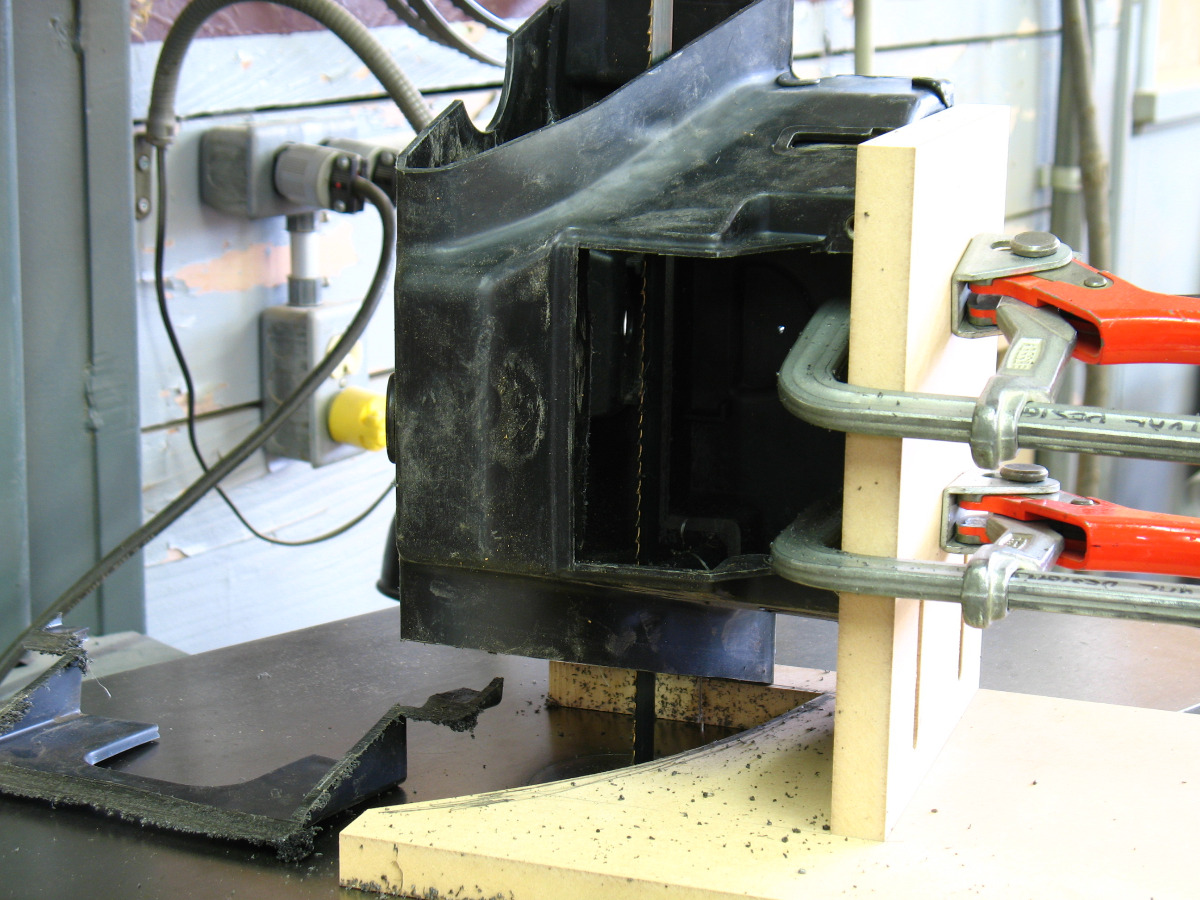Used an antique electric cattle prod looking soldering iron (thanks davido), which worked great for my first time ever attempting to fuse plastic (thanks SWest) together. It worked even better the second time, re-fusing it 3/4" narrower in order to clear the gas tank. :pinch: