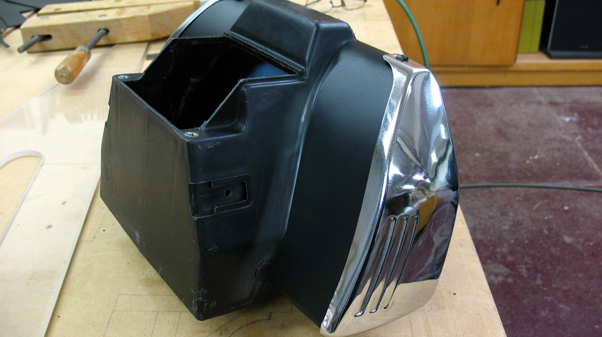 I'm pleased with the performance of this revised air box system, and decided to cover up the welded seams with a piece of 1/16" black printable polyethylene sheet.