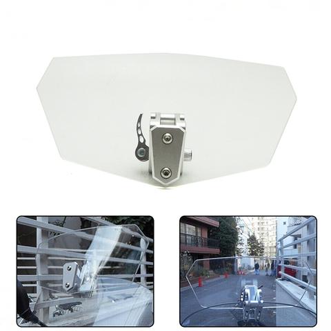 My windshield is just below eyeglass level. It is small enough as to not slow the bike down too much and I can still sit up doing a ton or in high winds. I just ordered a larger one for winter riding. It will break the wind on my hands so they won't get so cold. I'll switch them back over in the spring.