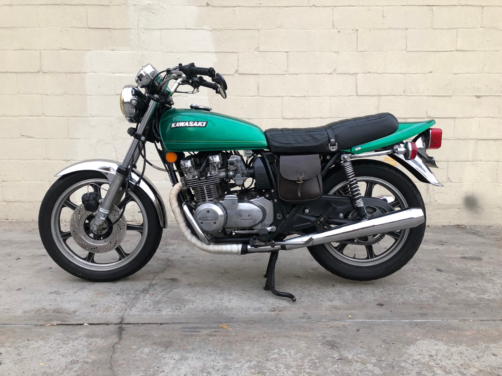 1978 KZ650 C2, 130K kms, Delkevic ex, EI, CVK32, PMC easy clutch, ATK fork brace, steering damper, braced swingarm, ZRX shocks, 18" Z1R front wheel.