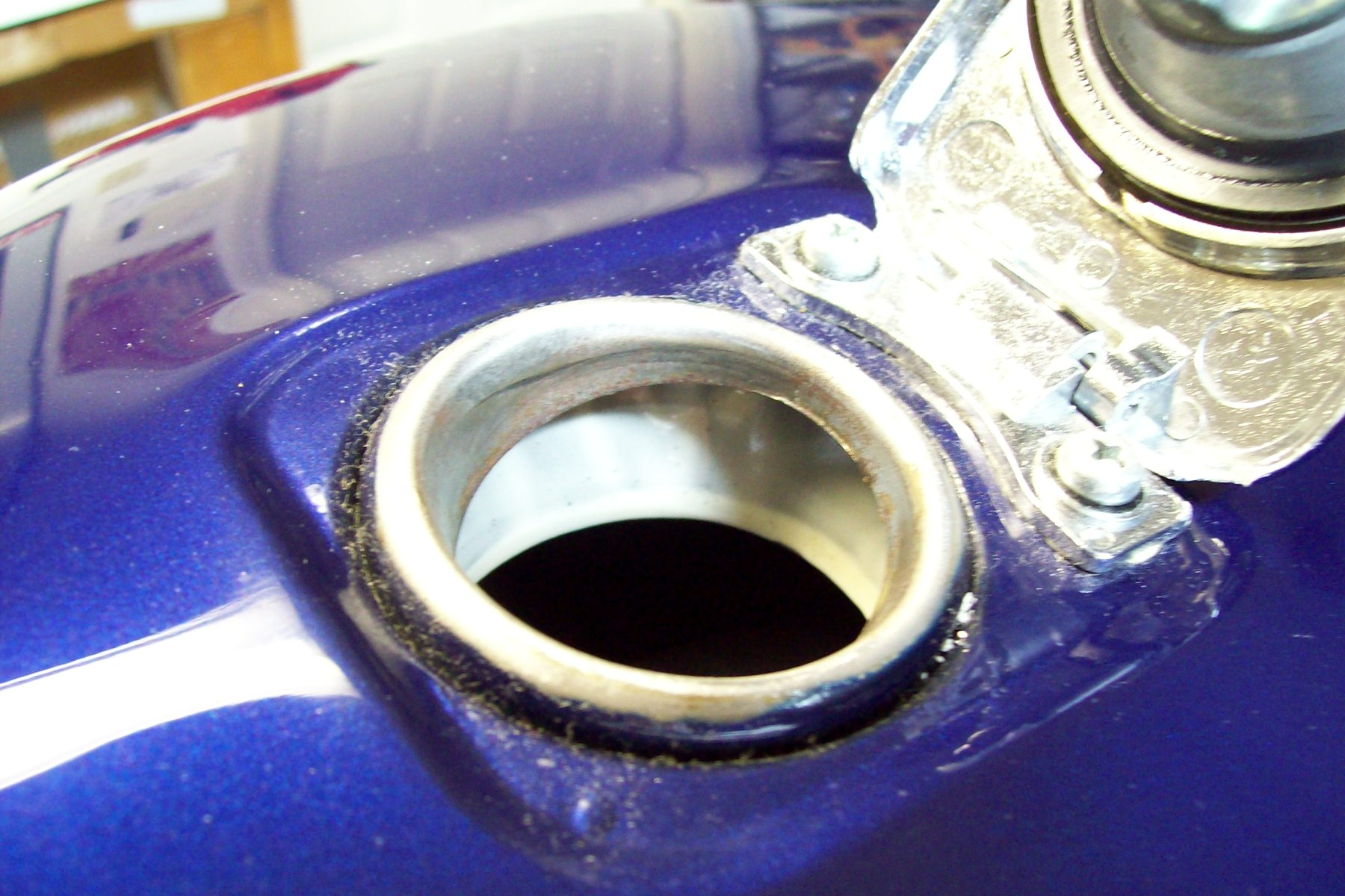 Notice there is no paint on the sealing surface where the gas cap rubber would touch the tank.