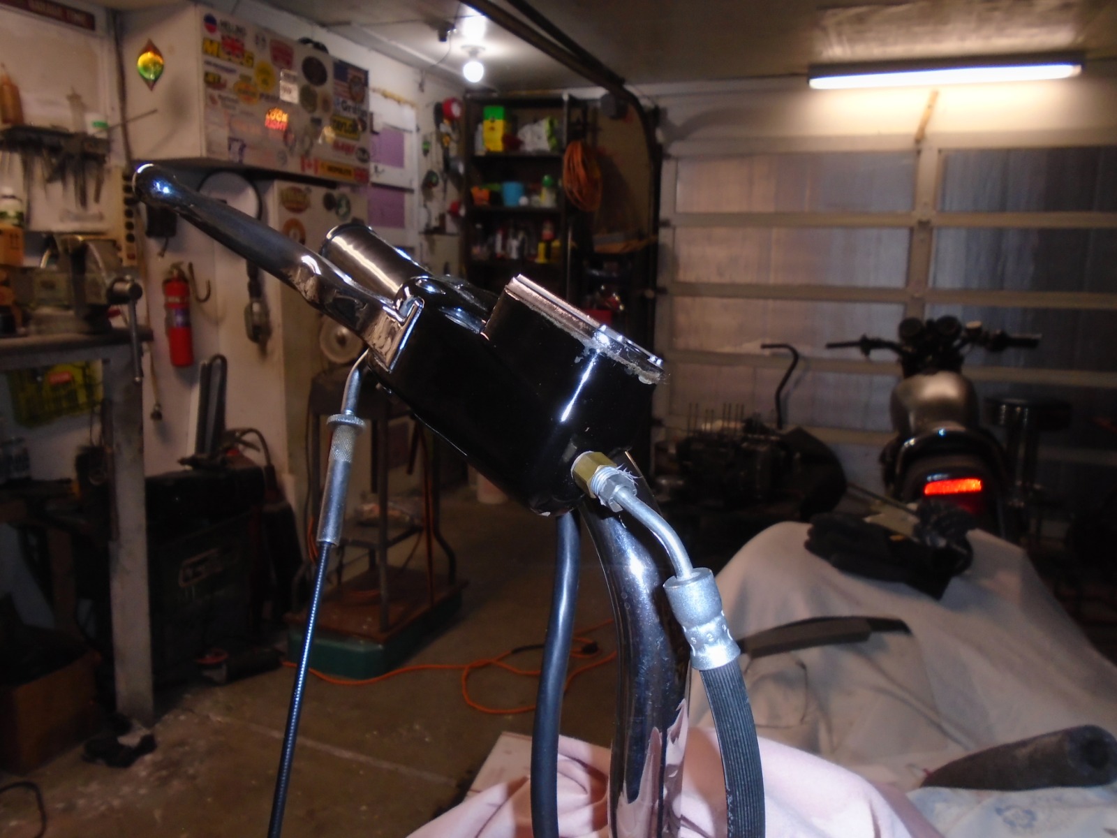 Because the crap, whimpy chemical paint stripper in cold weather ain't doing it! This bike had some ugly parts! They worked good. I am flipping them around, just made some short steel lines for the old stainless steel braided.