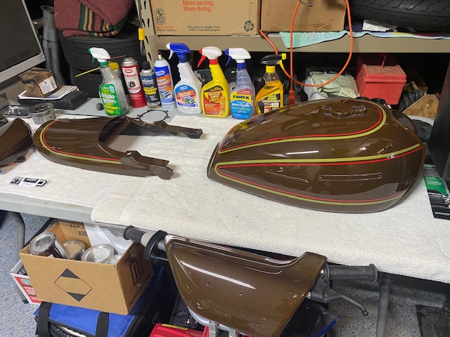 Got the tank, side covers and tail back from "The Paint Spot" in Addison IL yesterday. Very happy with the result. I think it took about a month total but part of that was getting the decals/stripes to him and then finding out there was a defect in the first set, so a second set was shipped to me quickly by Z1Parts.net.
