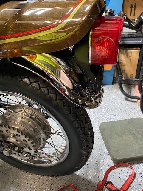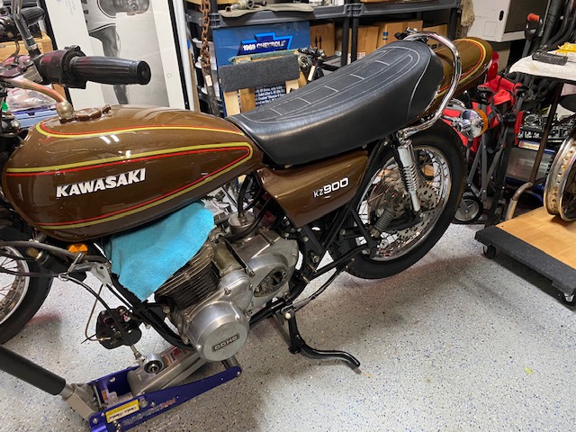 Finally had tire mounted to spoked wheel, installed new bearings, seals and also rebuilt caliper and master cylinder. New front brake lines from Z1 Spares in Australia. Thank you to Mikaw who helped me get the lower fork tubes vaper blasted and put back together as well.