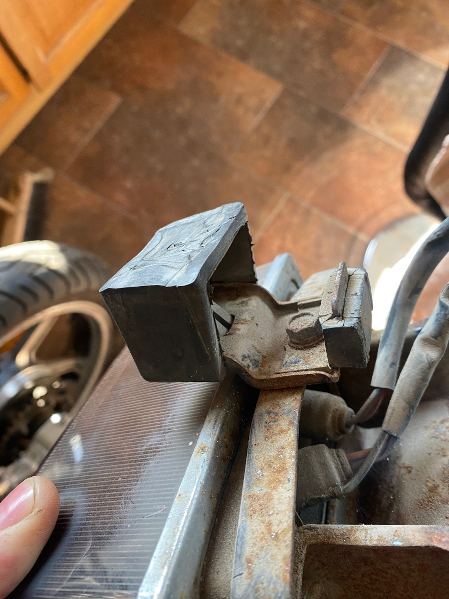 Hi all, I've been back on my 1000J project, its running and now just the fiddly bits. This bike has had a tail light bracket mod to tuck the light into the ducktail - looks cool but the original rubber block mount is gone, and the previous owner siliconed the ducktail to the tailight lens instead. I may even do this again but would like to see if I can get a rubber mount back into the picture, it will need to sit above the tailight lens.