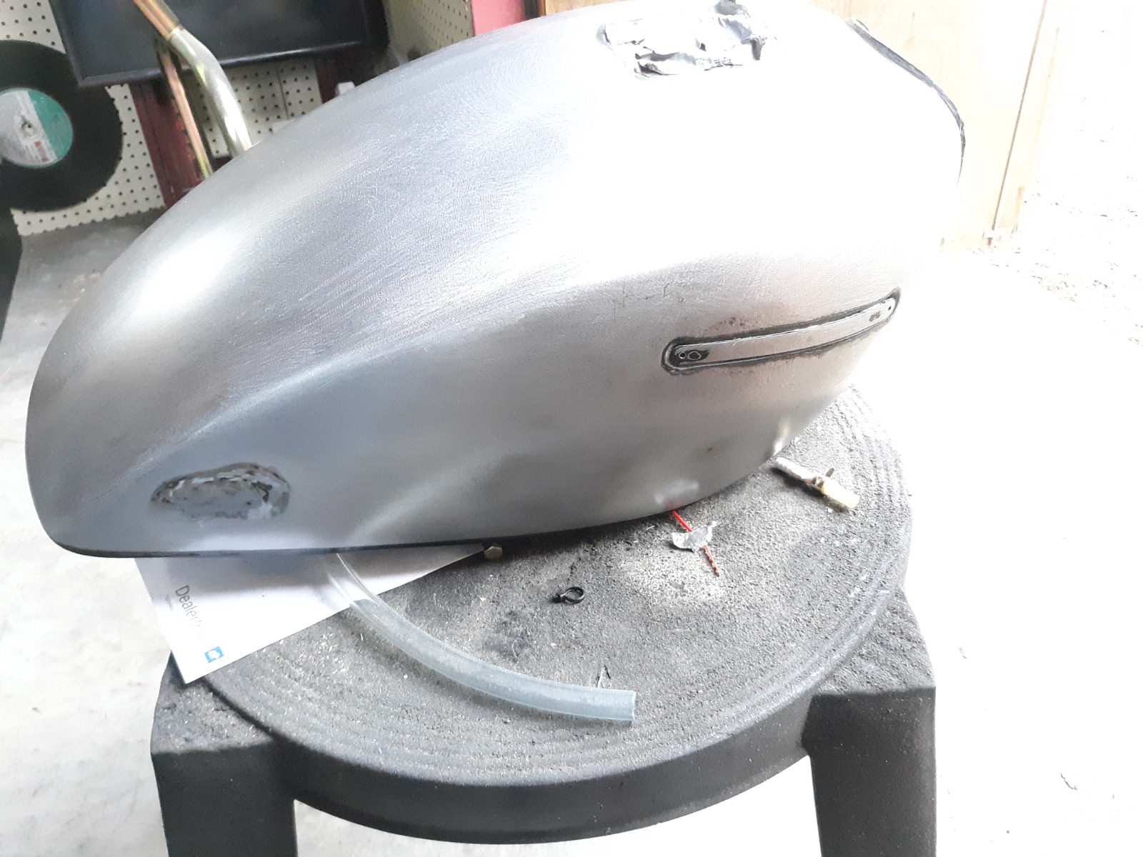 I've got a few dents that will need filler. I'm taking the tank all the way down to bare metal. Do I use self-etching primer or epoxy & do I lay that before or after the bondo?